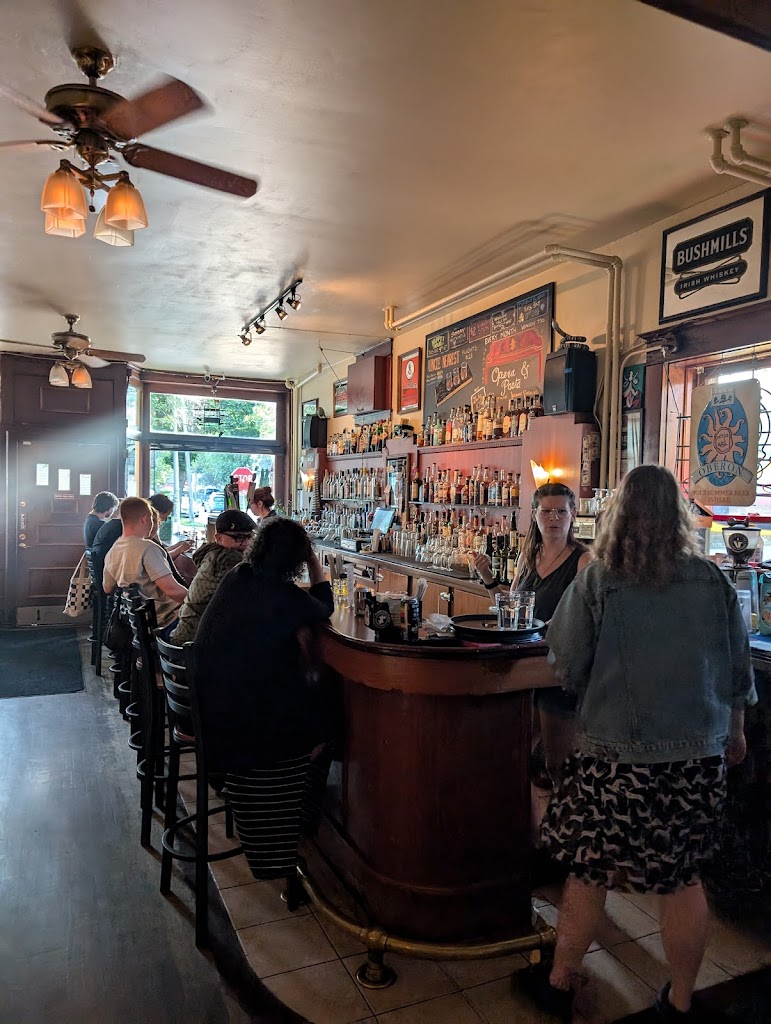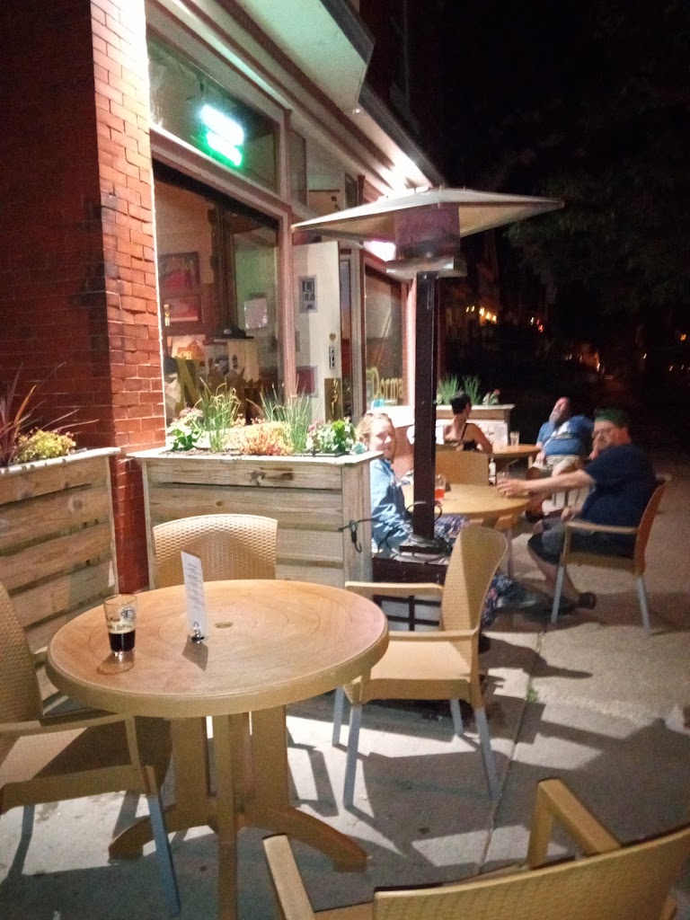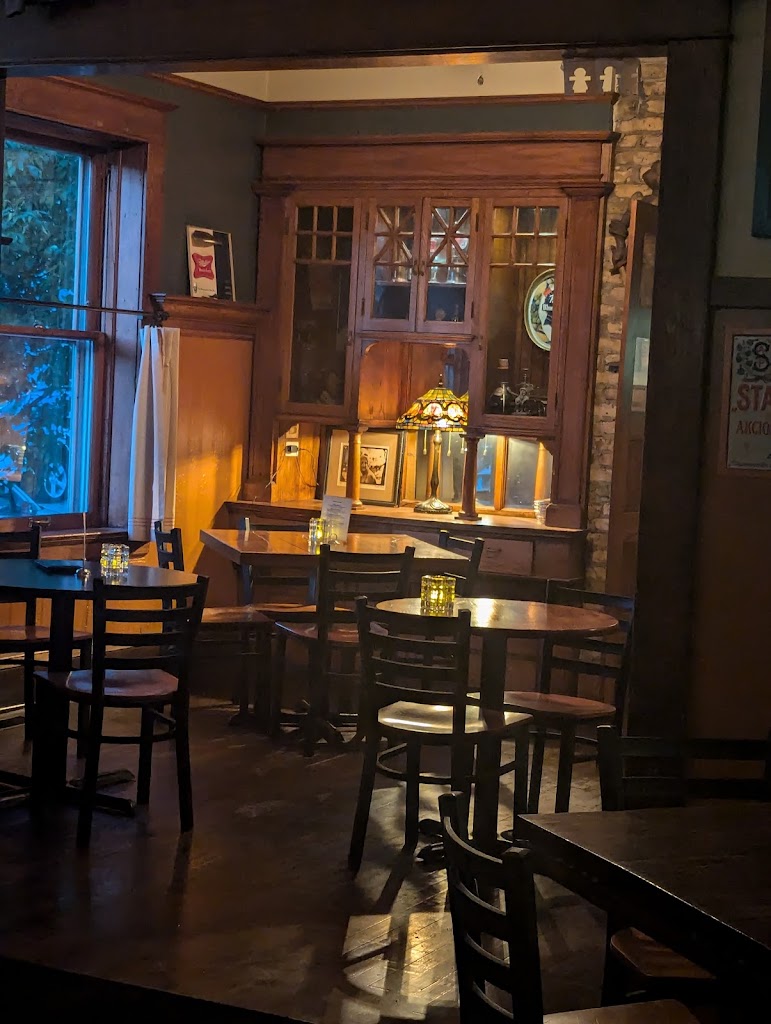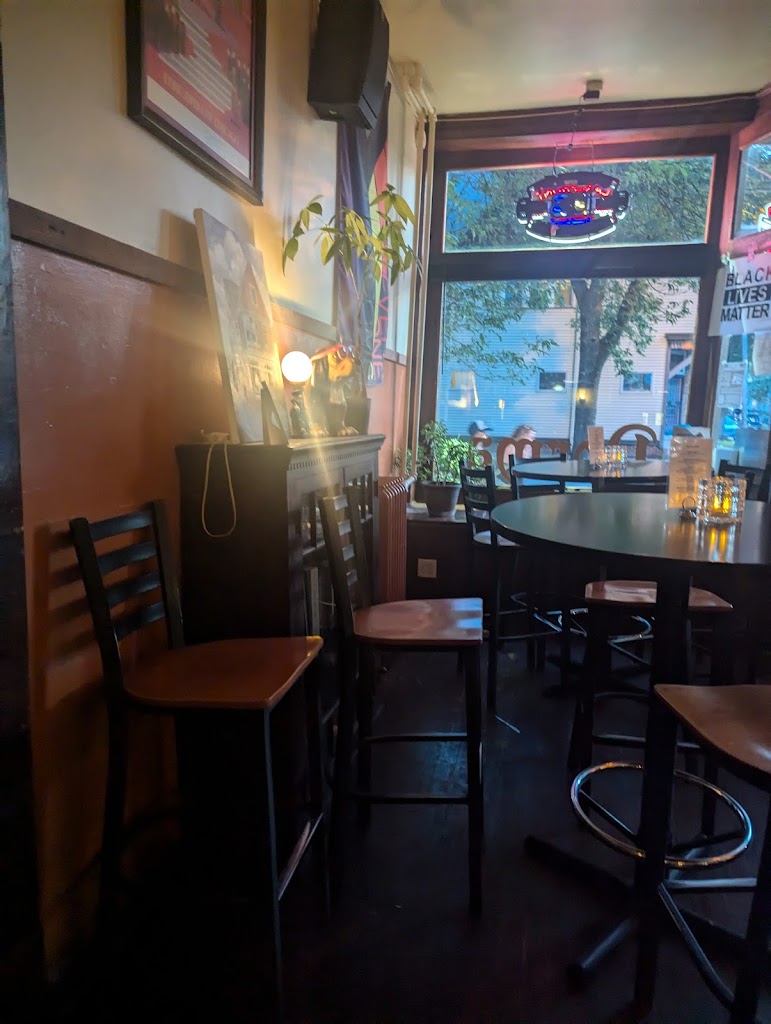 Great bar and restaurant in Riverwest! Dim lighting, unique atmosphere, and good food and drinks! It was fun to try a seasonal cocktail. The menu is full of great sandwiches, meat or vegetarian! There's often an off menu food special. The salmon was perfect. Would definitely recommend stopping in for dinner! There's indoor, outdoor, and bar seating.