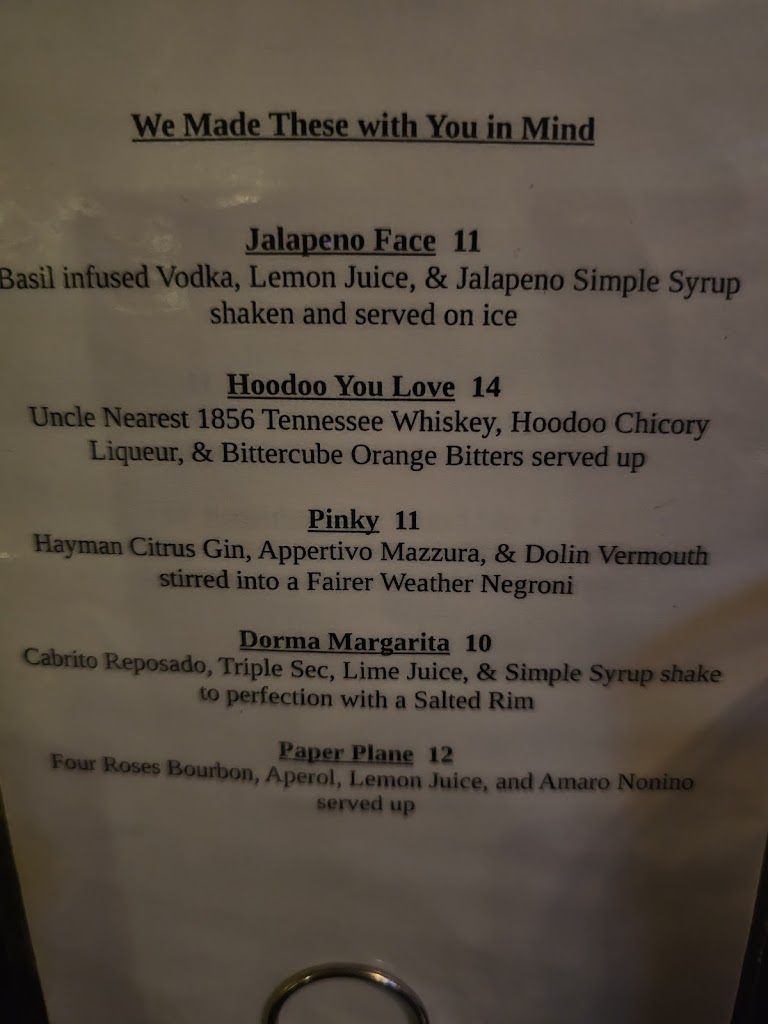 Drinks were amazing !!! Great food! Nice atmosphere!