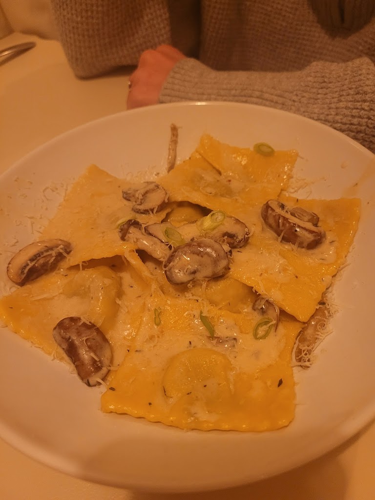 Had the whole experience appetizer, main course and desert. I went with the steak which was cooked perfect, husband when with the duck ravioli , he loved it. Would go back anytime !