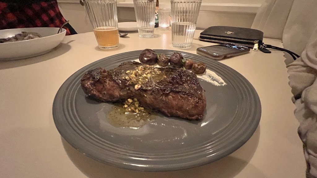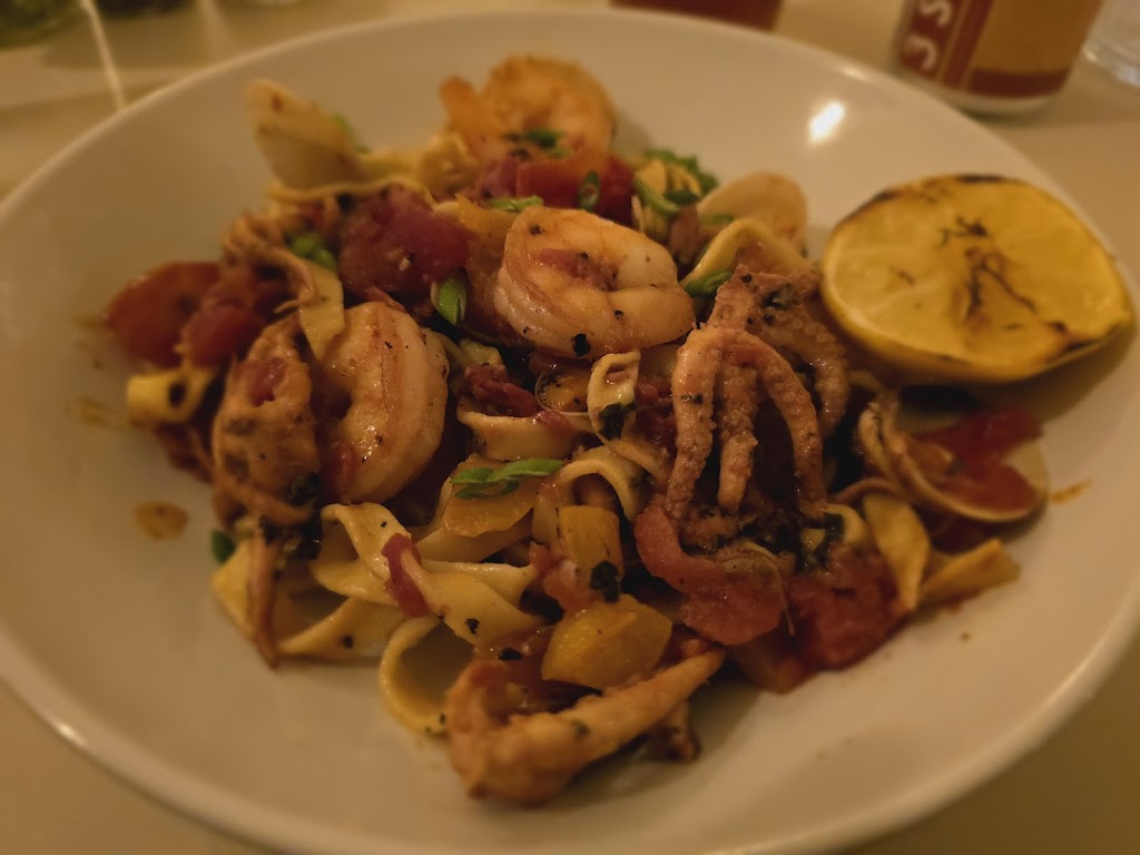 For the main course, I opted for the chef's special: Rabbit with roasted cauliflower and zucchini. This dish was exceptional. My wife has the 14oz NY strip steak with salmoriglio sauce and roasted baby potatoes. The steak was cooked to perfection, tender and juicy with a delightful hint of herbs and spices. The sides complemented the dish beautifully, adding depth and richness to every bite. The rest of the table ordered pasta dishes that looked incredible and I heard nothing but accolades about them.