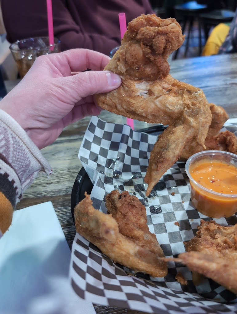 I've been craving fried chicken all week and I've had the colossal wings while I was here before while having drinks with friends (which was amazing) so I figured I'd get takeout. Called in my order, I was told it would be 25 minutes and that was fine because I was running errands, got there 20 minutes past the time frame and they weren't sure if my order was done then came to realize it was under the warming lamp. They were however very attentive and because of the mishap was given a free drink chip.
