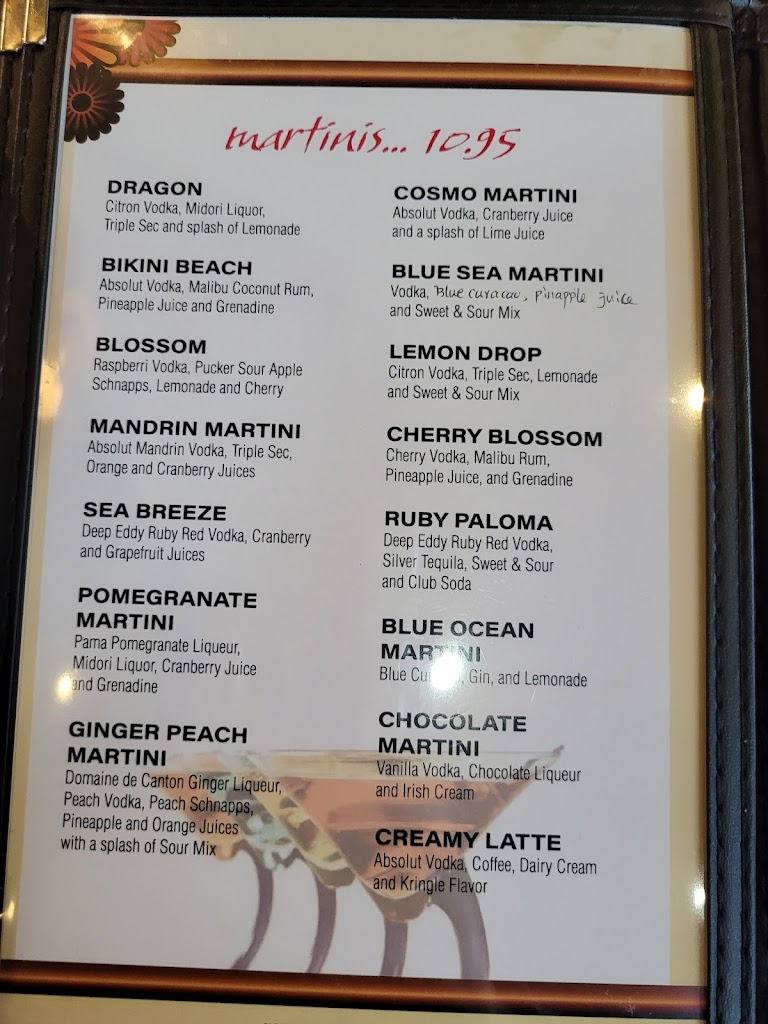 Want a great little show? I love the hibachi grill. I would recommend the Peach ginger martini. Get the Lover for 2 the best!