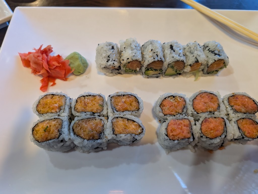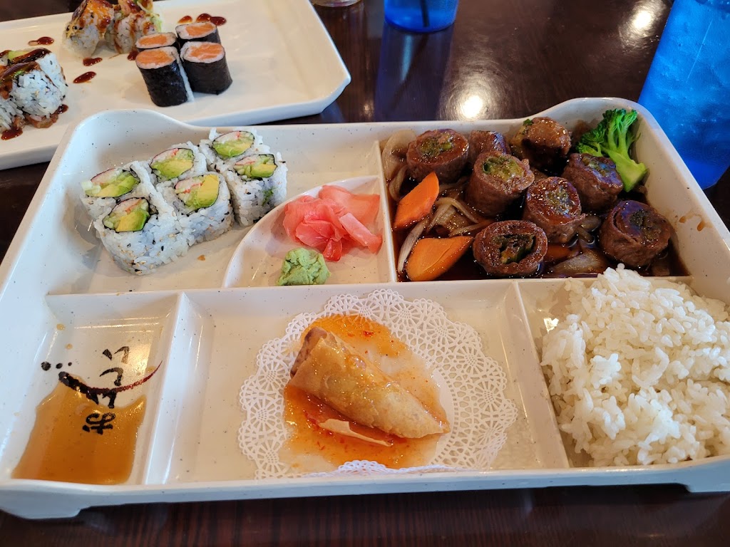 Food was your average fair of Japanese hibachi and sushi. The steak quality was fatty, but tasty. We ordered a steak and chicken meal with a spicy jalapeno meal.