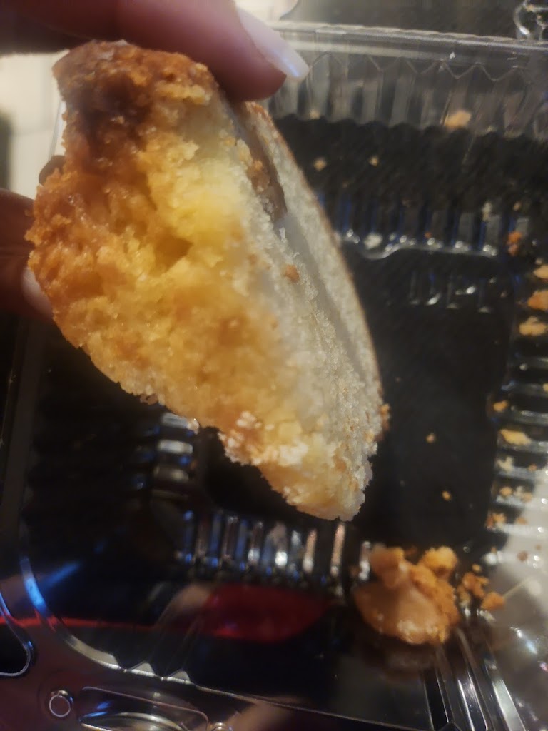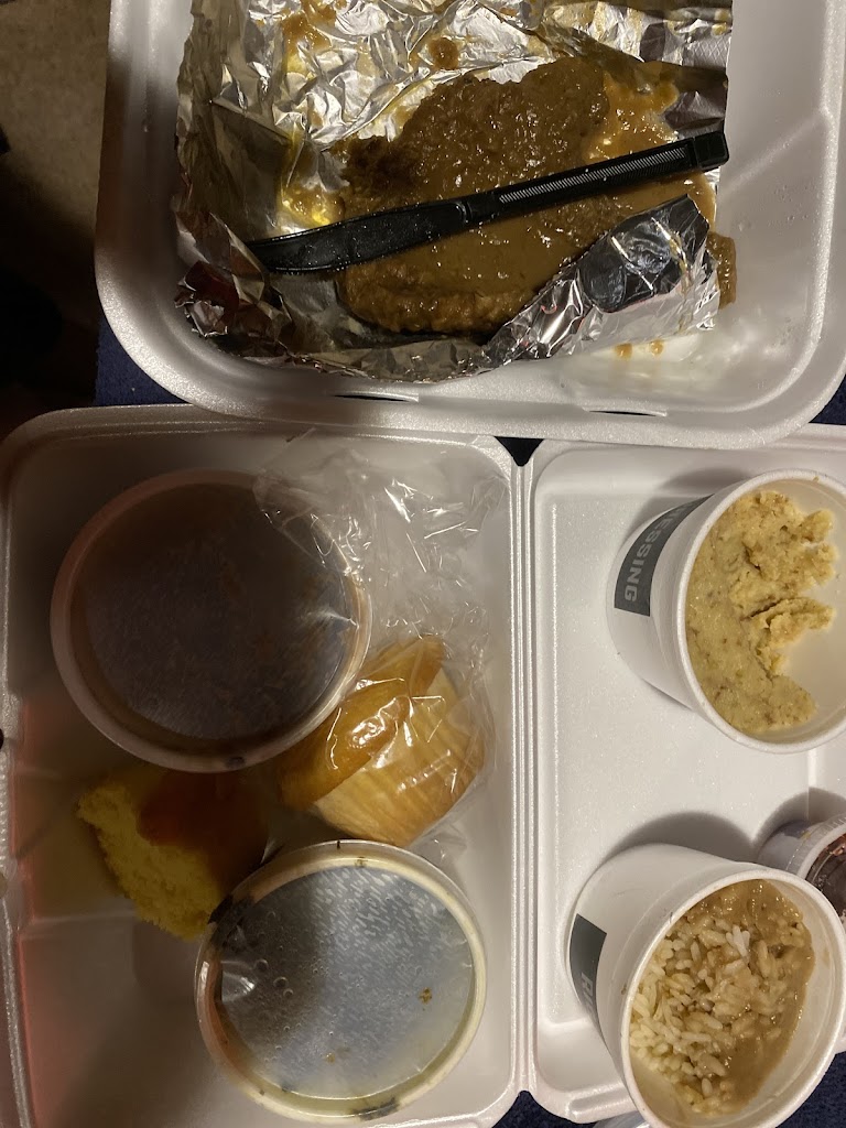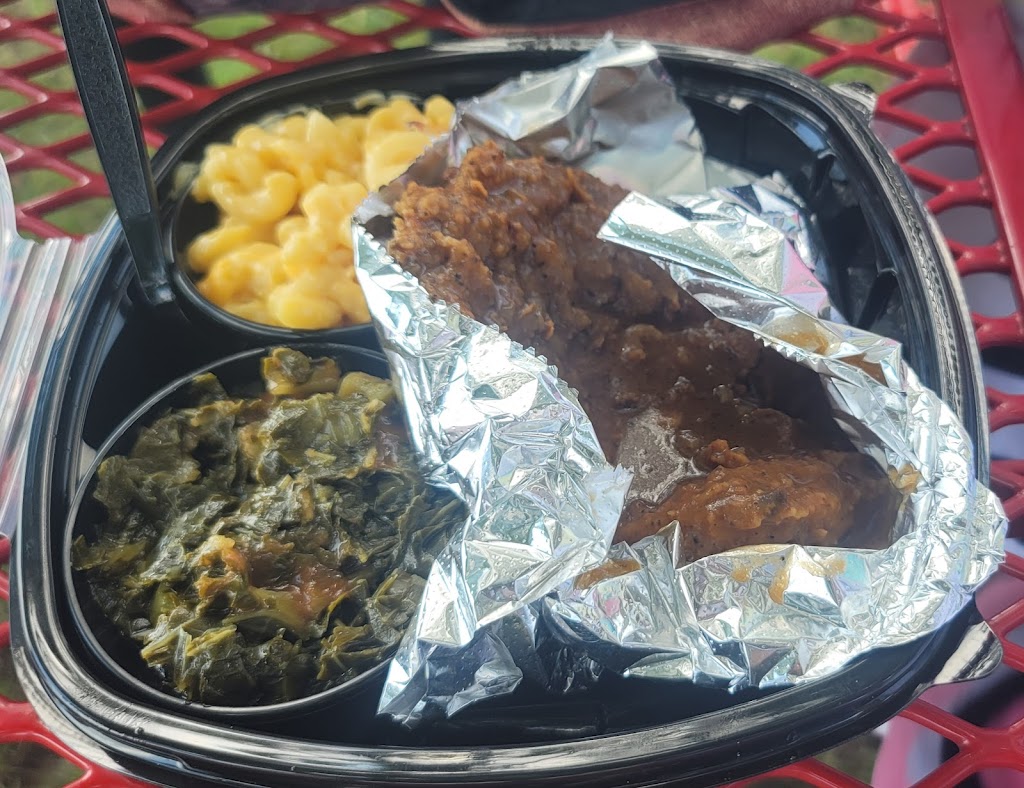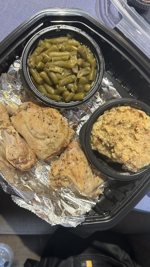 The food was sub-par. PorkChop was very salty, catfish was just "ok", chicken wing was tasty but very small. Black eyes peas were very salty, mac and cheese was similar to store bought....nothing special. The corn bread was smashed and crumbled into pieces. I've never seen cornbread at a restaurant do that. I grabbed a peach cobbler dessert to take on the road with me. It appeared to be prepared by an outside vendor as it was pre-packaged. It was actually the best part of the meal for me.