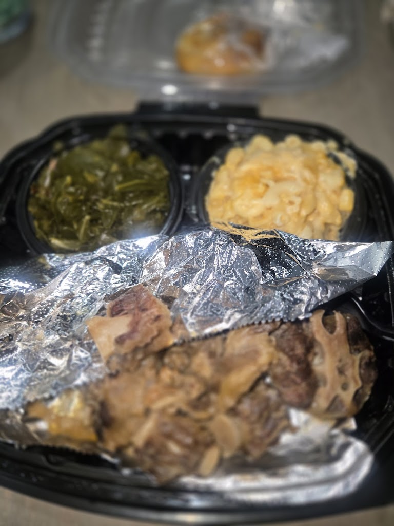 We’ll start with the pros first. The person at the counter was friendly. The restaurant was clean. That’s why the rating is 2 stars instead of 1. Now that we’ve gotten that out of the way, I’m truly disappointed. Paid almost $30 for oxtails that I took two bites out of and literally threw it in the trash because it was soooo salty! Like, I probably would’ve had a stroke if I ate it but it was so salty that it was inedible. I really want to know why the oxtails were smothered in gravy like a porkchop? If I wanted a smothered pork chop, I would’ve ordered one. I would include a photo but as I’ve mentioned several times, I threw the entire serving of oxtails in the trash. I threw the dressing away. It was not good and seemed undercooked, very wet like. I was so annoyed that I threw the cornbread muffin away too so who knows what that tasted like lol. The greens however, were surprisingly good. In conclusion, I will not be back.