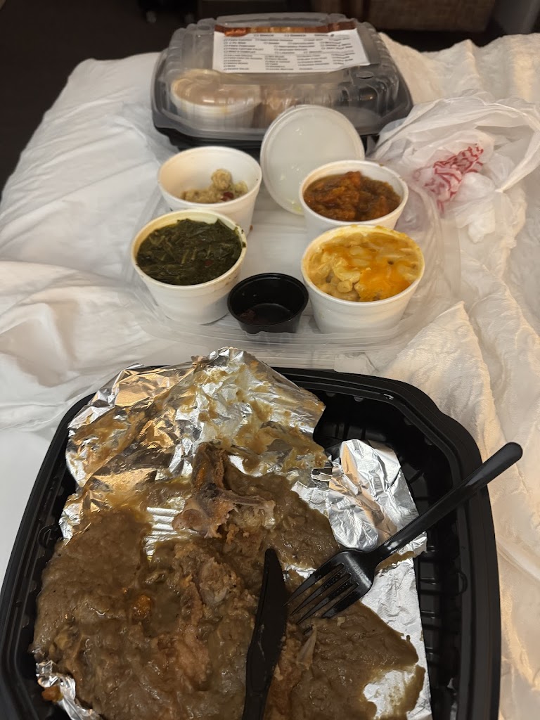 The restaurant was clean, which was nice, but the food was just OK. I ordered the braised oxtails, (too salty) mac & cheese, (not homemade/boxed most likely) dressing, (OK) potato salad (very good) and the red kool aid (didn’t taste like kool aid). For $40 they definitely gave me enough food. No disrespect to the restaurant, just being honest, but try it out for yourself