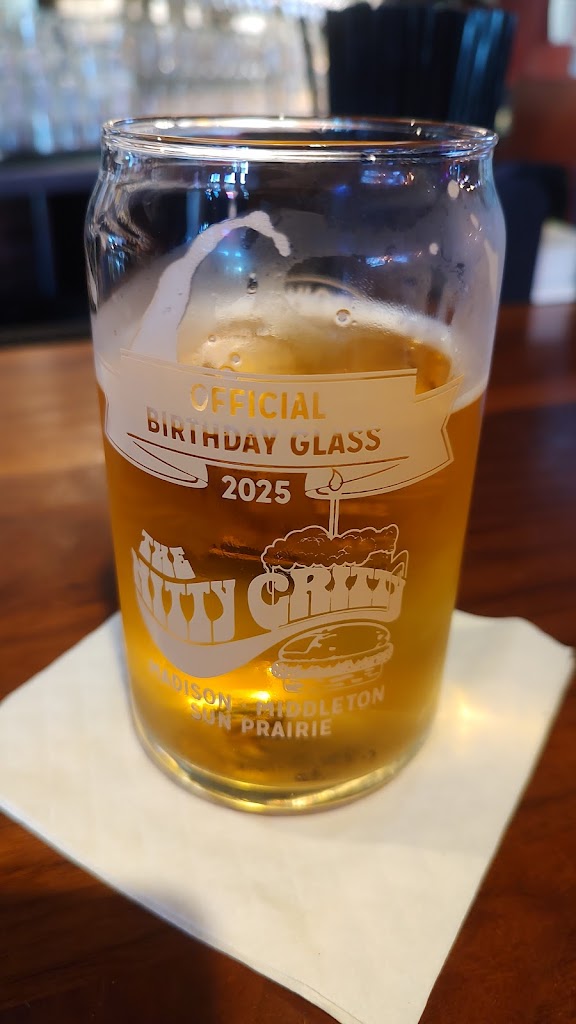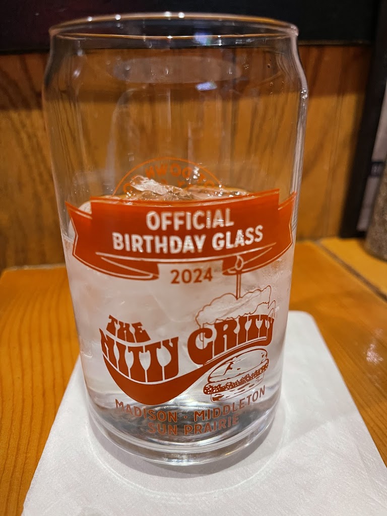 I like the new birthday glasses. The Nitty Gritty is our go to place where they have something for everyone. Love the Big Gritty Burger. Excellent beer selection and nice staff.