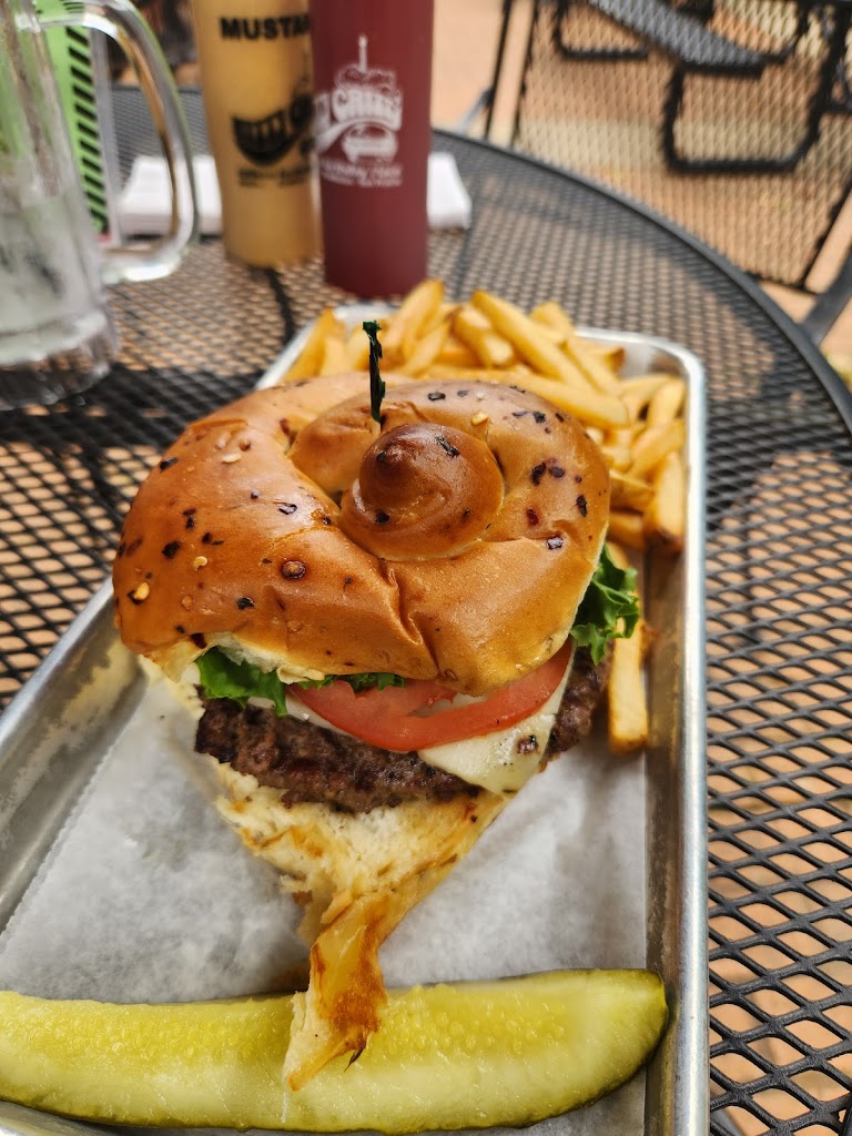 The food was average to below average here. My burger was very bland and not much flavor. The patio was nice; they allow dogs outside on the patio.