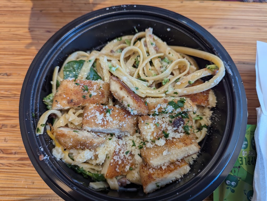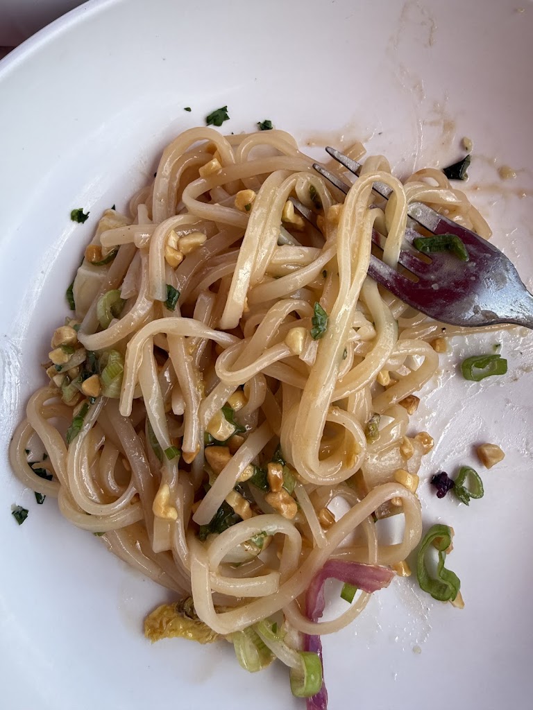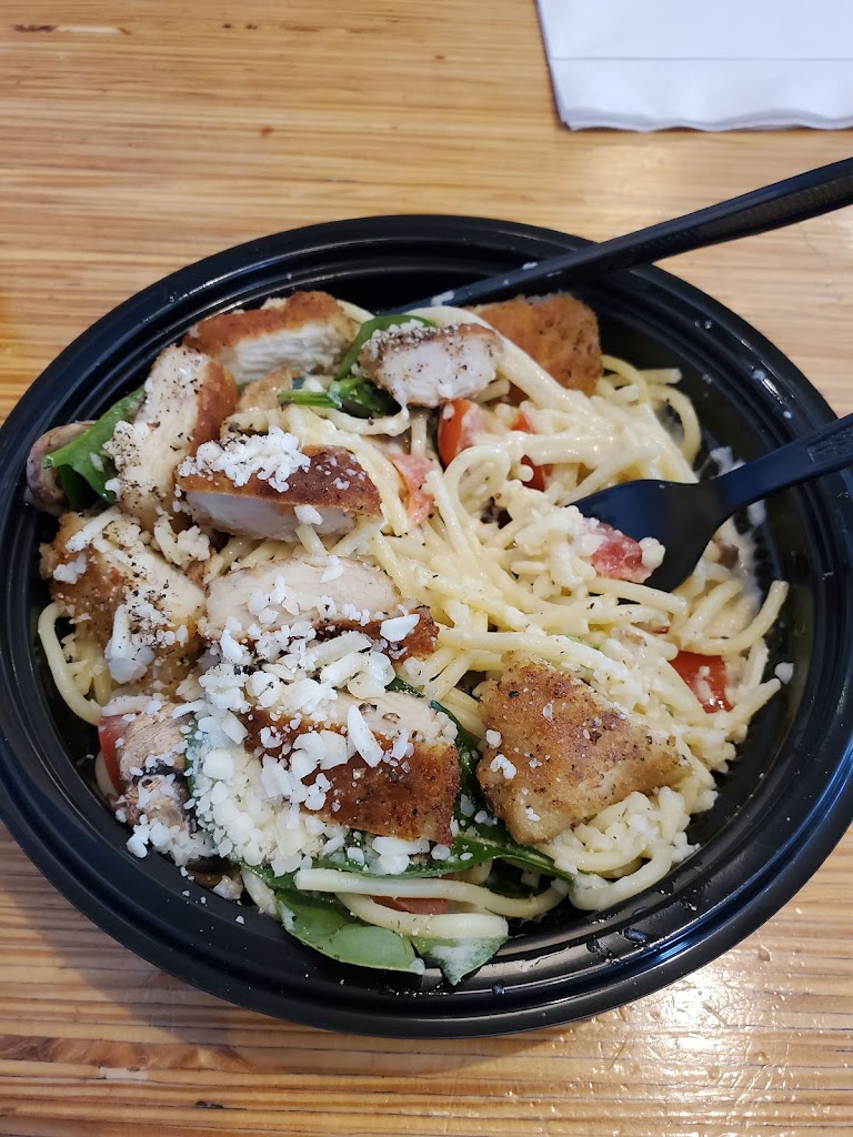Delicious chicken pad Thai! Very accommodating with my little one's lactose intolerance. She has kids noodles, cavatappi, and broccoli. She ate it all, which is rare for my toddler!
