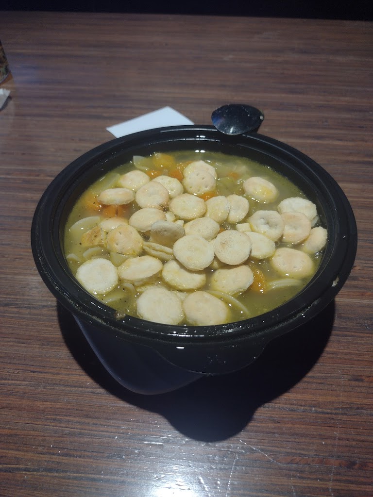 Chicken noodle soup is big and great for a small& healthy meal. Chicken inside is delicious.