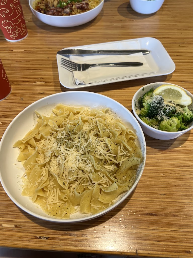 Stopped in for a late lunch and it was very good. The staff were very friendly, service was very fast and our order was accurate. I don’t know why I haven’t tried the buttered noodles from here before. Probably became the price for buttered noodles seems a little much here. They were very good though. Probably the best entree I’ve tried from Noodles. I also tried the lemon Parmesan broccoli and that was good as well. The Caesar salad was ok, I probably wouldn’t order it. My husband got his usual of bbq pork Mac and cheese and it was also good. Filled out a survey and got a free dessert. Great experience.