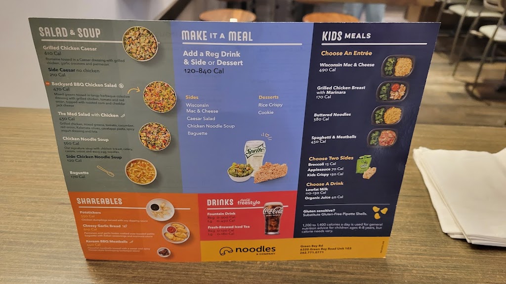 Noodles & Company at 6320 Green Bay Rd Unit 103, Kenosha is your destination for Uncommon Goodness and delicious variety to satisfy any craving and every taste, at a great value. From classic and contemporary favorites - including our world-famous Macs – to new culinary creations, our craveable recipes feature creativity and flavorful flare made fresh and just the way you want. We offer tasty choices to fit any food lifestyle, from vegetarian to gluten-free and more. Order quick pick up, delivery or dine in and enjoy free WiFi. We also cater groups of every size. Join Noodles Rewards today to earn points for freebies, offers and other great perks.