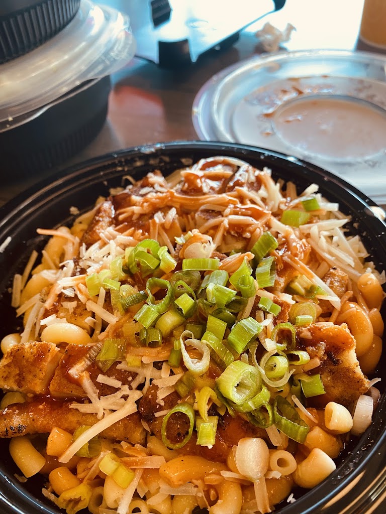 I got the buffalo chicken Mac and the chicken is burnt which completely ruins the dish with the burnt taste. I can smell it’s burnt as soon as I opened it. The cilantro was also completely wilted, are you SERIOUS! How am I supposed to feel good paying for an entree when it a burnt and the cilantro had already gone bad?????? The person who ordered with me also got burnt chicken in their bacon chicken Mac dish. Who smelt and looked at that chicken and cilantro and thought it would be acceptable? I’m sure none of your employees would eat this. Ridiculous. My camera doesn’t work otherwise I would take a picture. It’s ridiculous truly. It’s also completely bland and has barely any spice. I have had this dish a million times and even from this location before, I am sad it was so tasteless, bland, and burnt.