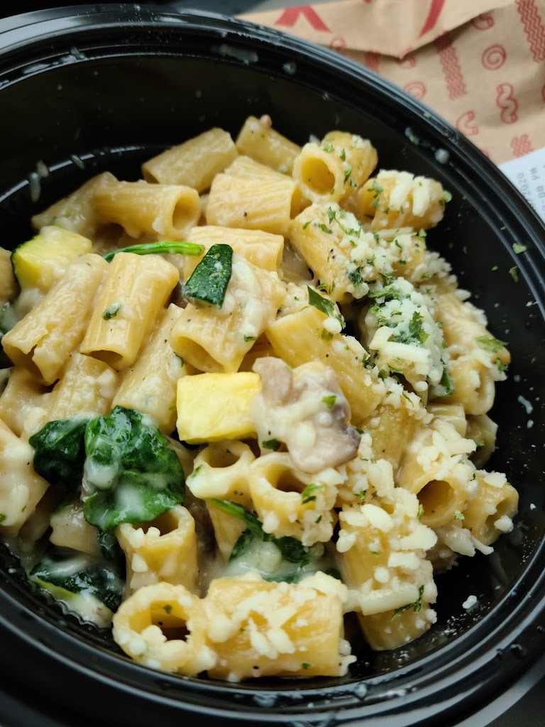Always a great place to eat. First time at this location. I decided to give the zoodles a try and I ordered the cauliflower rigatoni in an onion cream sauce. Wow would never guess the noodles were cauliflower and the dish was so flavorful. Highly recommend giving it a try.