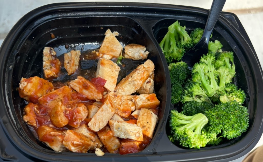 Staff was kind, offered a large variety of drinks and side dishes. The meal depicted is a $6 kids meal which came with a grilled chicken breast, marinara sauce, broccoli, another side (or more broccoli) and a drink.