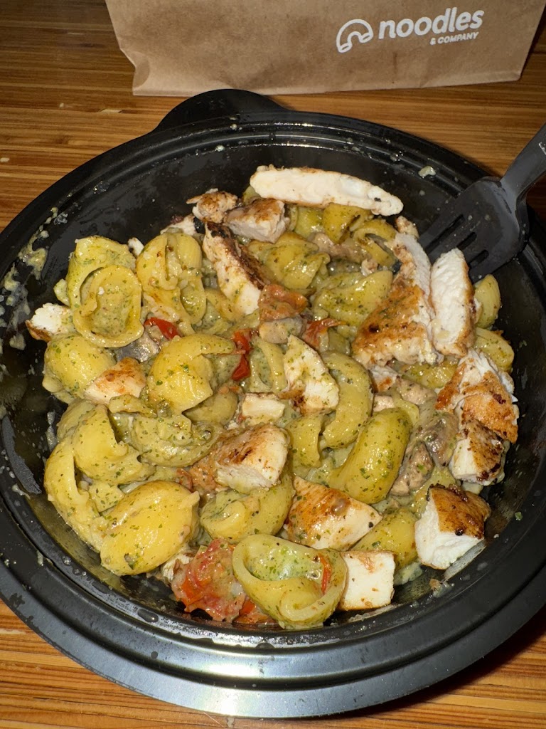 I made a mistake on my online order, and Nick was super helpful in getting it corrected. He was taking such good care of everyone inside and had an amazing positive energy. I haven’t always had the best experience at this noodle’s, but he and his team made it great :) Food was delicious! I got the pesto cavatappi with grilled chicken and the gf pasta instead of cavatappi.