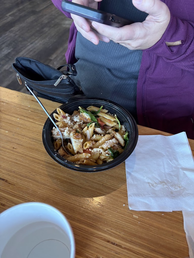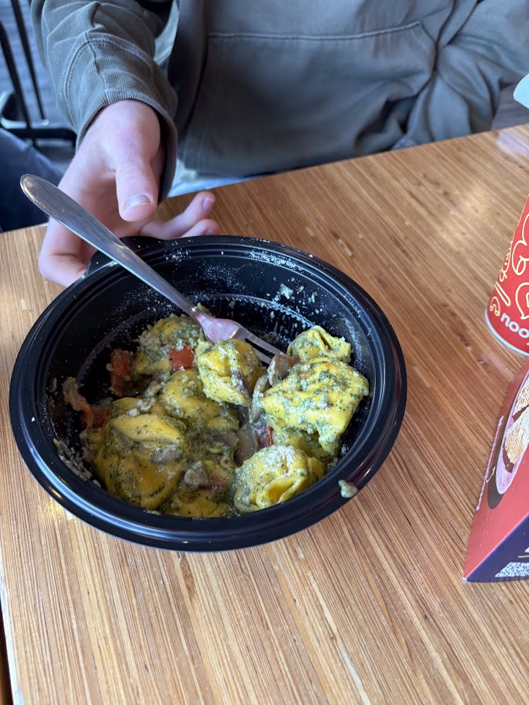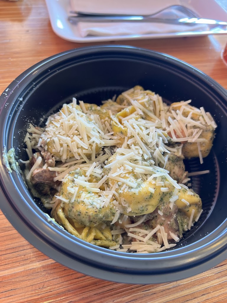 They charged me $3 for a cup of tap water, then served me overpriced pasta in plastic bowl.