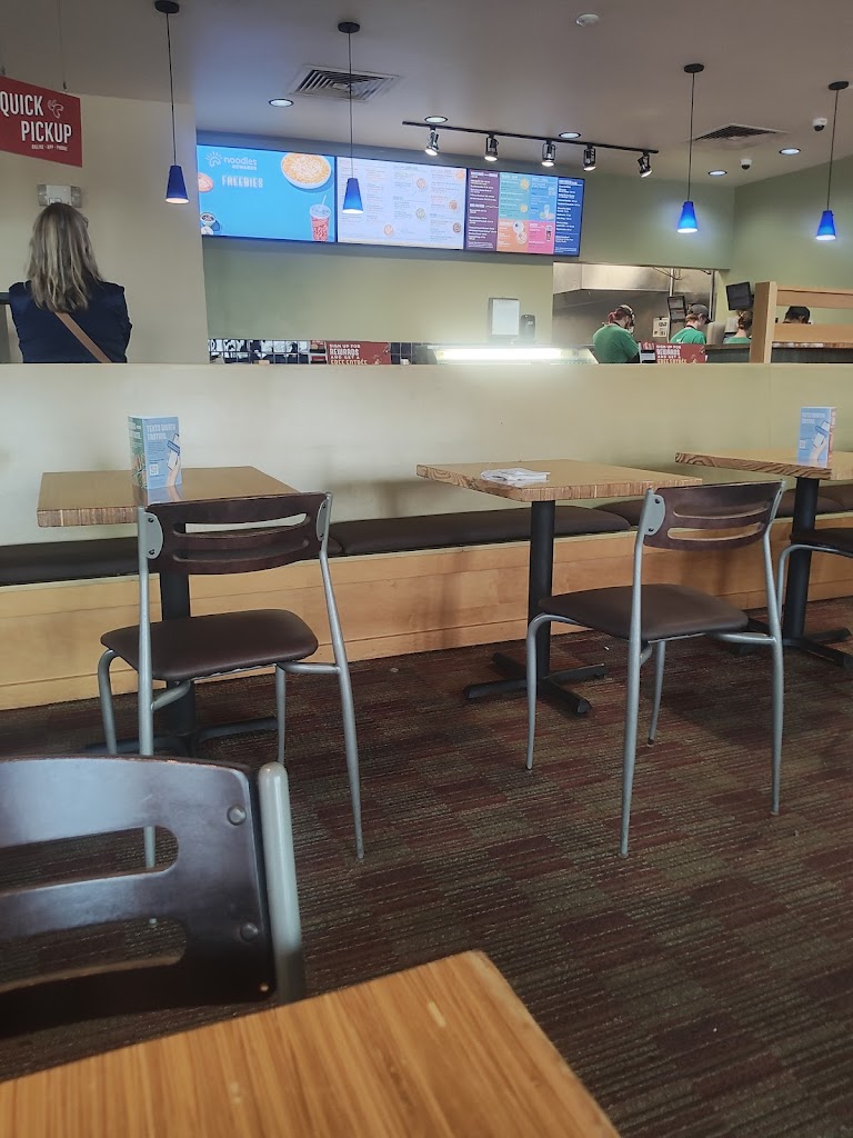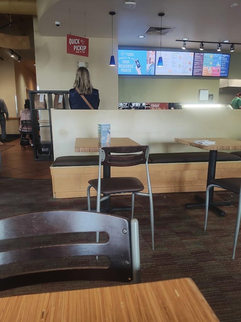 One of the best Noddles and Company locations in the area. Food has always been delicious and every time I am in there I see someone wiping down the seating area.