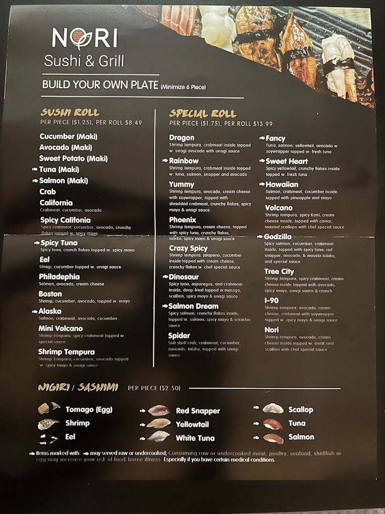 Our restaurant focus on serving the community with freshly prepared authentic sushi and hibachi. Sushi will be serve through build-your plate, along with made to order hibachi grill. Nori's mission is to deliver an ethnic Japanese cuisine by building an organization that is enriched by the modern culture and the cookery.