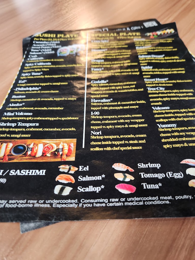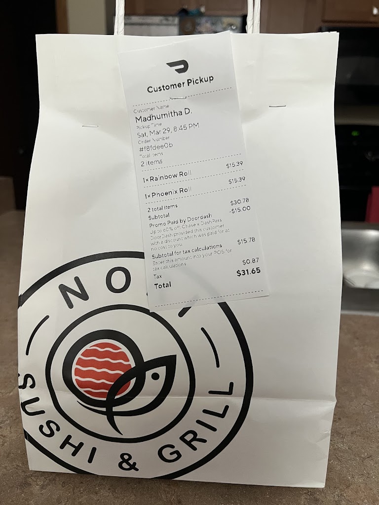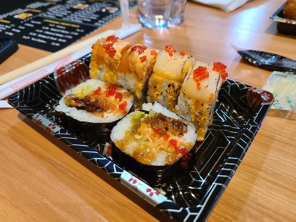 The place has “Build Your Sushi Plate” fun wall to chalk out your sushi 😋. Ordering is also made simple with a self-serve kiosk. For takeout, food bags sturdy and simple.
