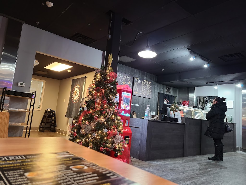 It's a small establishment with a few booths to eat in. The food is alright but a bit too expensive. The staff is fairly friendly. The menu has a wide variety of options to choose from.