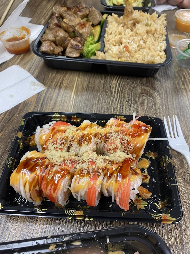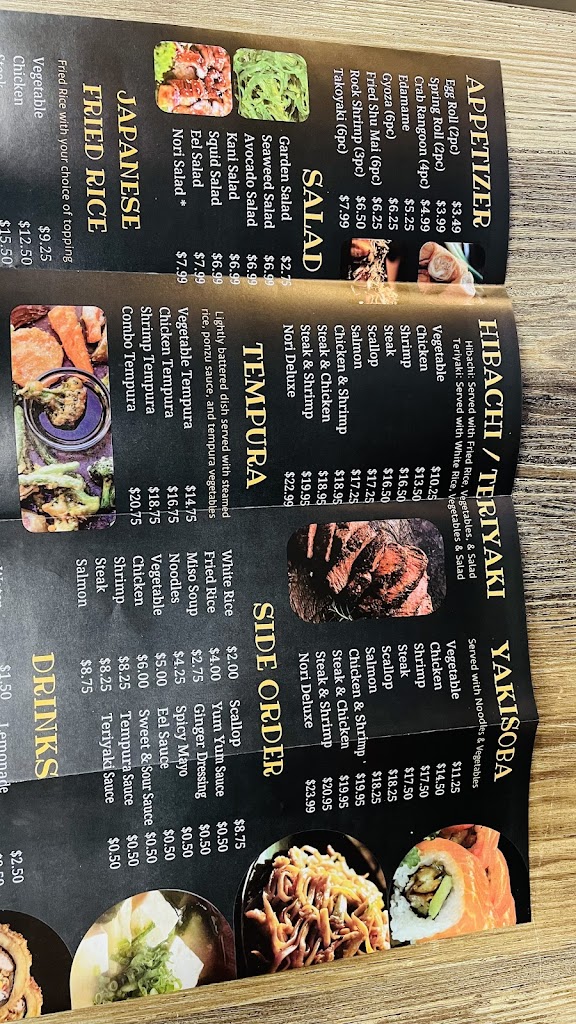 Greeted by friendly staff when we walked in. Clean dining area with steam line design. Sushi is delicious!! 😋We had the “yummy” roll, good size and plenty of pieces. The steak hibachi was great; the meat had good flavor and the veggies were crispy and fresh. The kani salad was my favorite with a flavorful dressing and the right amount of topping and lettuce. Would highly recommend.