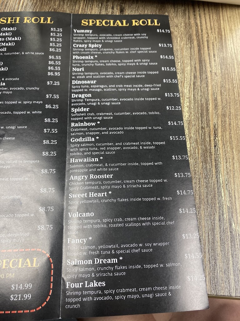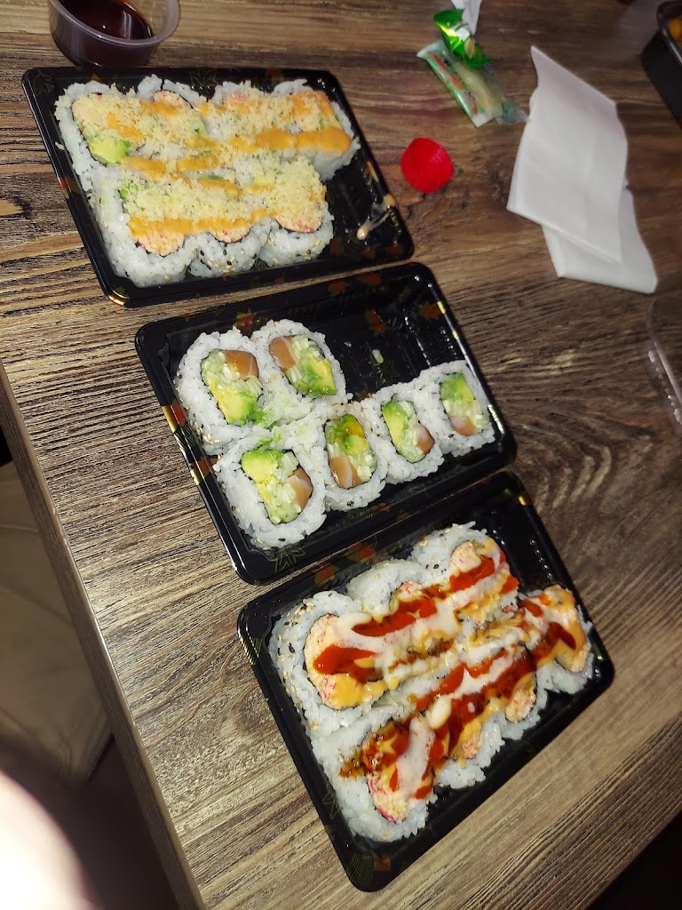 Bigger than normal ( at least for me) sushi rolls. New place, good prices, kind people. Will be back to try more of the menu.