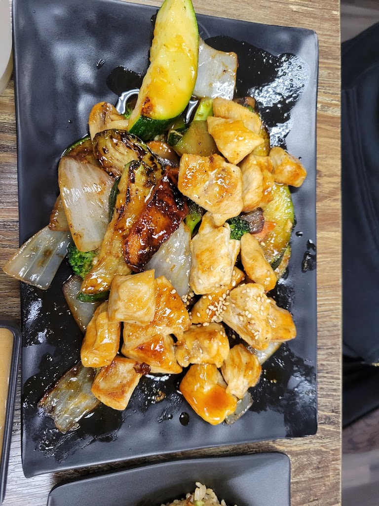 Our first time. My son and I tried the egg rolls (HOT!!), Japanese fried rice with chicken, the hibachi chicken, and vegetable tempura. The vegetable tempura (comes with a side of rice) was our favorite. The hibachi chicken was similar to other places (rice, vegetables, salad) and the Japanese fried rice with chicken was good too.