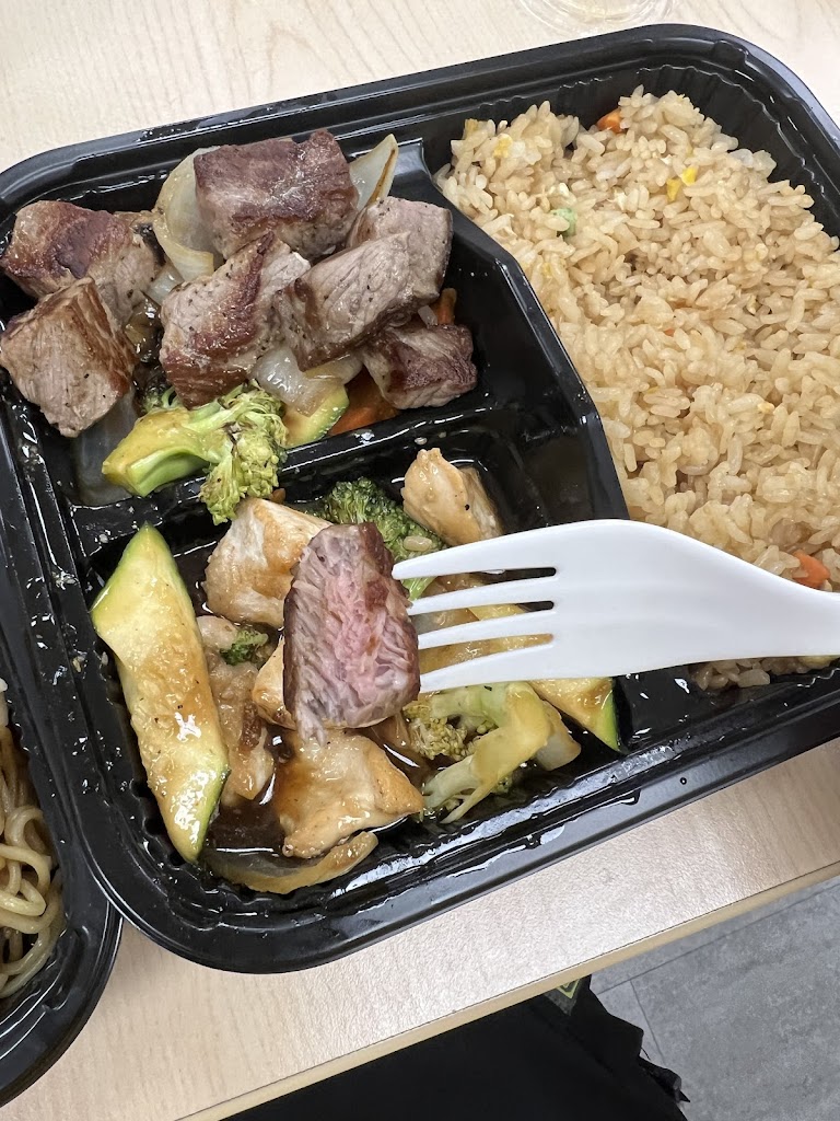 Ordered the Steak Hibachi (medium rare). The steak was extremely tender and the flavor was great, my food was still hot when I got it home from my order pick up. Portion size was large too! Also had a dinosaur roll that we loved! Definitely will eat here again.