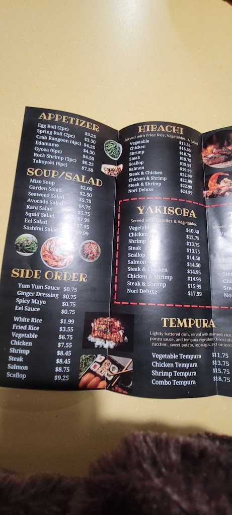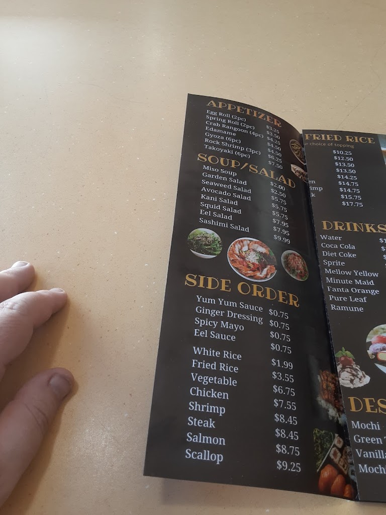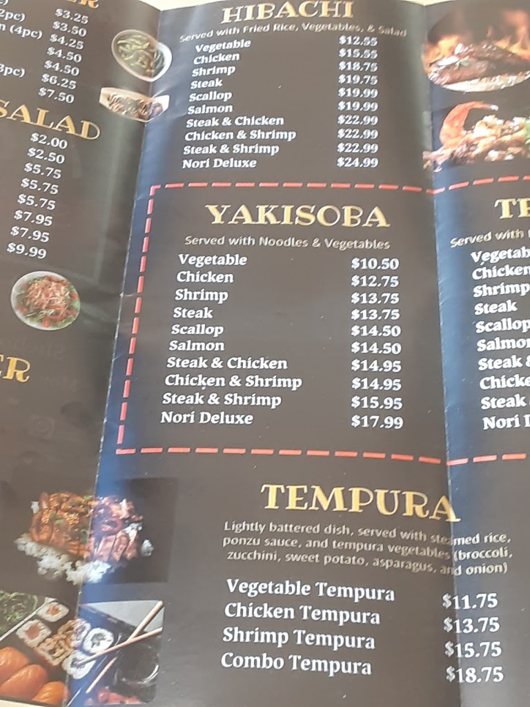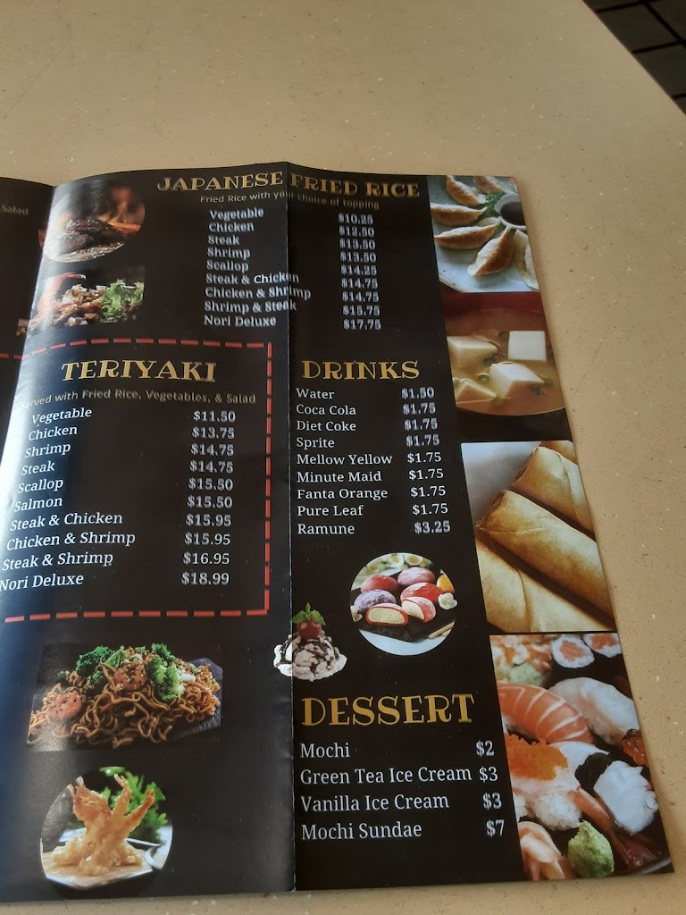 Good options on their menu. Prices seemed a tad high to me but when I saw the portions we got felt better about the money we spent. Ordered my food to go. Didn't even have to ask for soy or Wasabi sauce. They already had it in the bag for me. It's also nice they do lunch special prices on the sushi rolls. Staff was friendly and my order was prepared quick and well. The steak for my yakisoba noodles was really good and I like that they don't skimp on the vegetables! Will go back. (Keep in mind it's in an old Cousins Sub Shop! If you're looking for "atmosphere" go somewhere else. Dine in tables available. But I prefer take-out anyway)