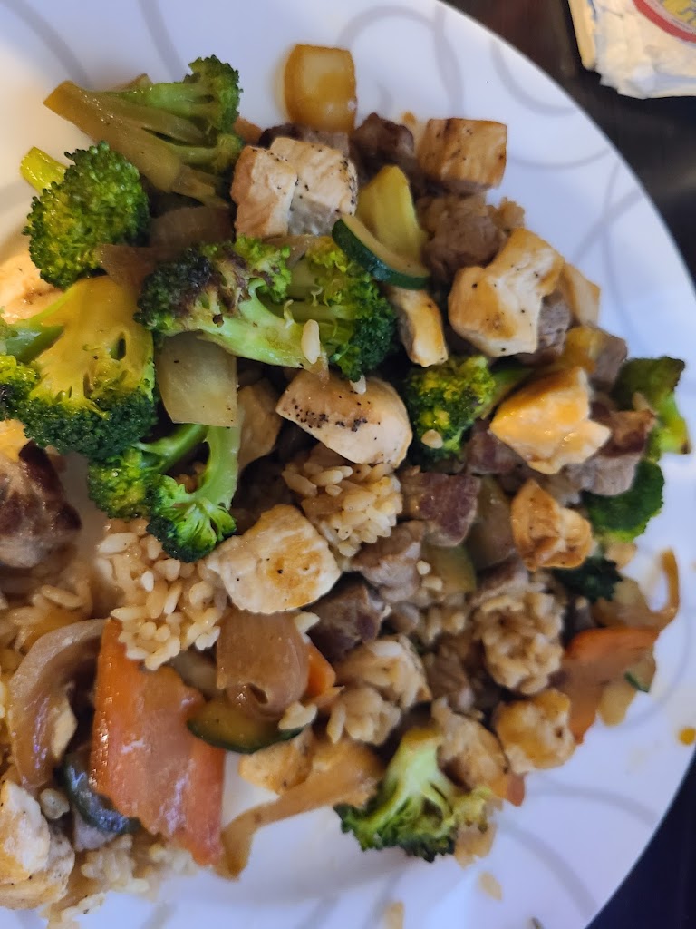 The teriyaki was the most disappointing part of the meal. There was absolutely no flavor. It was obvious the cook threw chunks of grilled chicken and steak in a pan and heated it up. It was not tossed in teriyaki sauce or seasoned in any way.