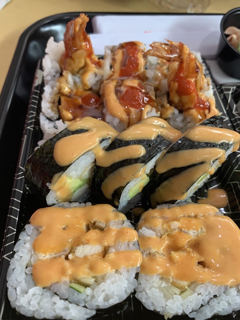 The chicken and shrimp fried rice is awesome! The steak fried rice is awesome too. The eggrolls are very tasty and delicious, next time I am going for yakisoba! Oh and the sushi excellent! Plus if your into a little sashimi, they got it!