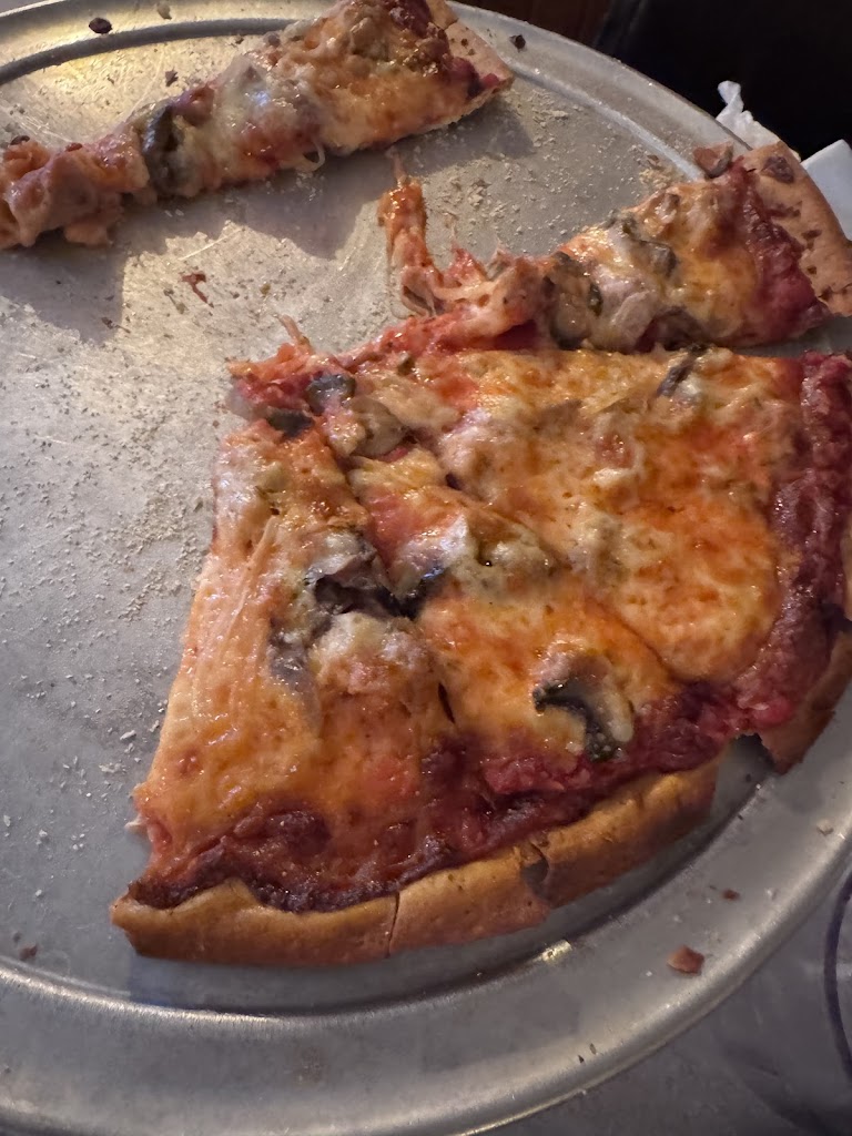 The pizza we ordered was cheese, sausage, mushroom, onion and also got garlic bread along with eggplant strips. All of it was very very good.