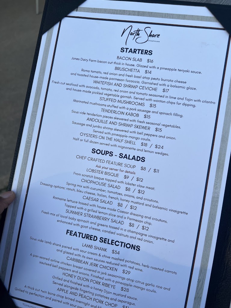 We love North Shore Chop house. This has become our new place for a great steak. Their lobster bisque is delicious. The service is excellent as well.