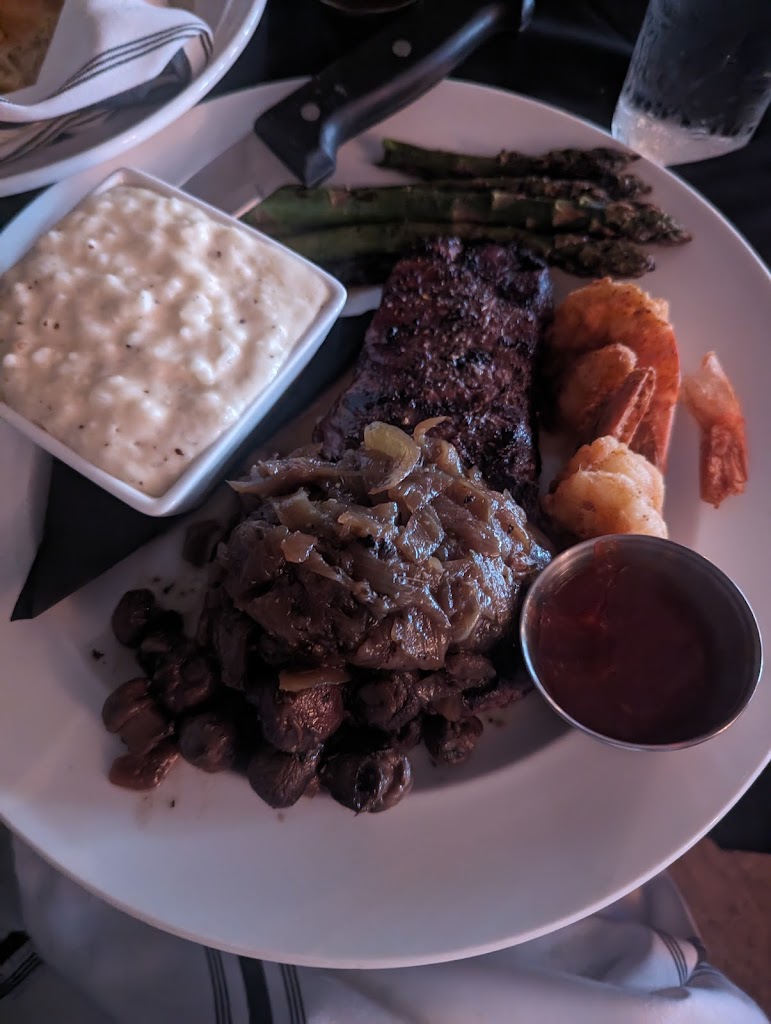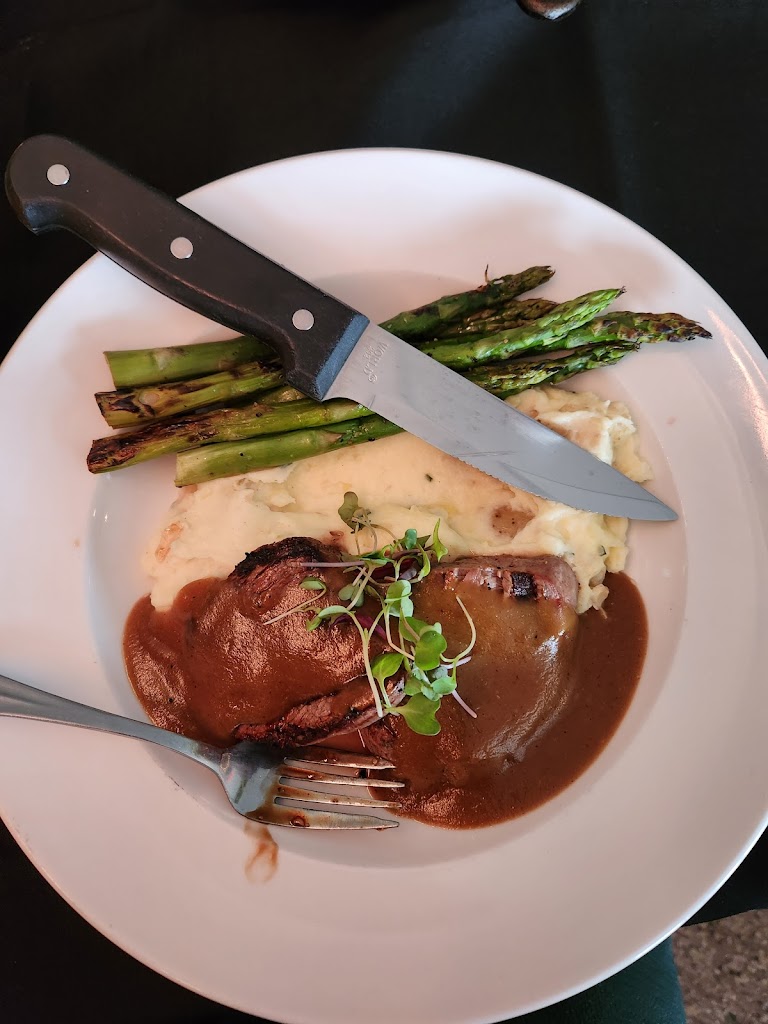 Omg. The meal I had last night was incredible! Dry aged 30 day New York Strip Steak over Saffron mashed potatoes and big asparagus spears. With a cream sauce over. Best meal I have had in years….cooked perfectly medium rare.
