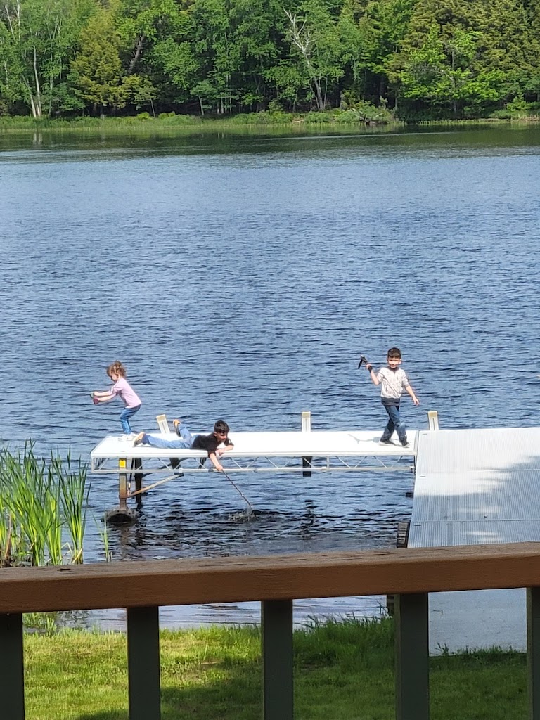 1) Dock and beach, So there is absolutely no dock it was pulled out of the water and up on the shore And we visited mid summer, In the pictures in the reviews and website they sold us on Family friendly fishing. There is no fishing whatsoever, Simply no room. The beach has been neglected And has become overgrown, Both in the water and out. Also the only way to access the beach is by walking through other folks campsite which feel quite awkward.