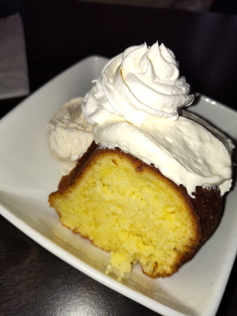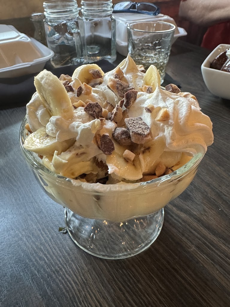 We had Apple Crisp it was served warm and came in a huge bowl with a generous scoop of vanilla ice cream.