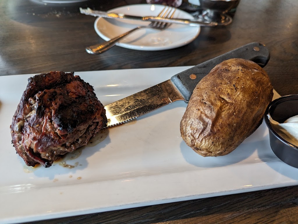 Sincerely THE BEST prime rib I have ever had! Done to perfection! Perfect brocolini! Lovely side salad. Masterful cocktails and THE BEST DESSERTS (and the BIGGEST dessert portions) I have ever been offered anywhere. We will be back SOON! What a great total experience! Just be sure to get a reservation!