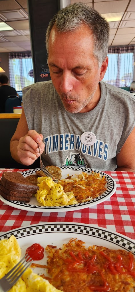 My first time here. My dad lives in Rice Lake and suggested it. The staff was very friendly and helpful. I had biscuits and gravy and my husband has taco spuds and both were very good. I will definitely go back to this little gem.