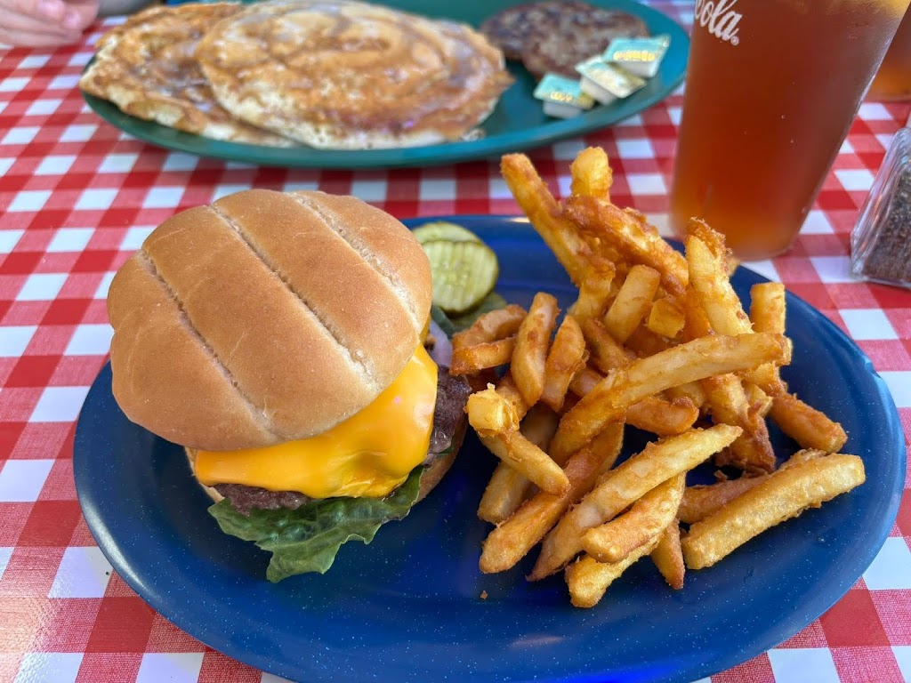 We popped in for a lunch while heading into town during our vacation in Birchwood. The food came out quickly and was absolutely delicious with healthy portions. I had a cheeseburger which was freshly hand pattied and seasoned well. The fries were perfect. I also had a cup of the chicken dumpling soup which I highly recommend. My husband got the cinnamon roll pancakes and said they were wonderful. The waitress was friendly and helpful. My only critique is that when we walked in the waitress made eye contact with us, but didn't acknowledge us. This in itself is not a big deal, but there were only 2 other tables at the time, and we sat there for awhile before she even acknowledged we were there. She went back and forth to the back a few times, and then finally came with menus. We actually were wondering if we should just leave and go somewhere else, when she finally came and spoke to us. It would have tsken her no additional effort to welcome us and tell us she would be with us soon. That we can understand. Thankfully she made up for it with her service once she brought us our menus.