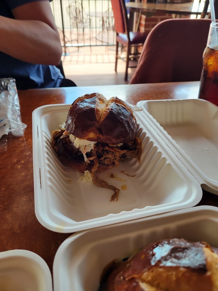 The pulled pork and the pretzel buns are to die for. This place is awesome! Great bar staff too.