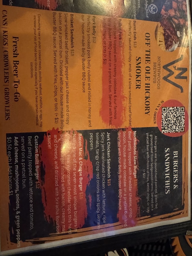 Had a fantastic lunch at Northwoods Brewpub! Hubs & I couldn’t decide between the brisket sandwich, bacon Mac & cheese burger, and pulled pork sandwich…so we got all three! BEST DECISION EVER! They were all soooo good! The manager was super nice as well and we found the pub very kid friendly!
