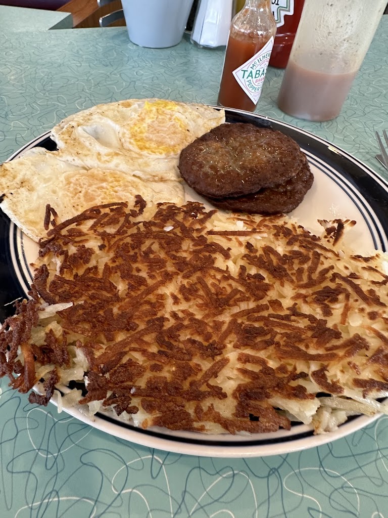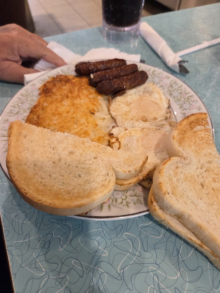 Breakfast was good, even the eggs-over-medium. I walked right to my seat and was served quickly. The hash browns were crispy as they should be. I ordered just what I wanted, ignoring the menu suggestions. Besides the diner area there are some gift offerings. I’ll go back if I’m nearby.