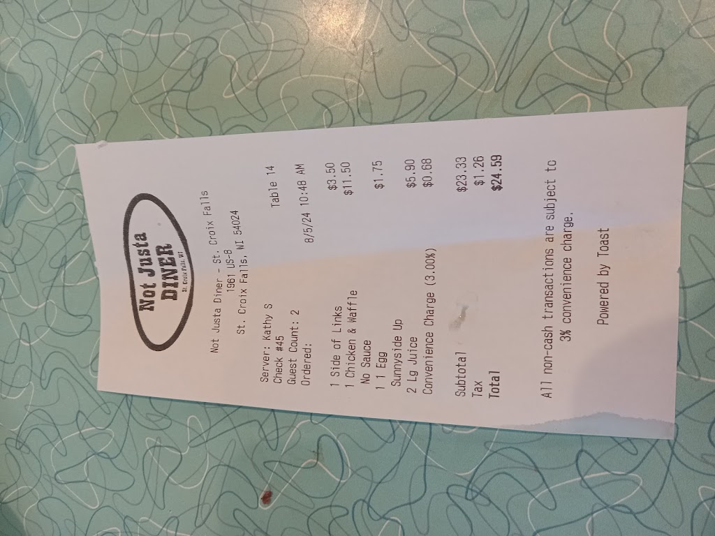 I've never been disappointed. I have waited till I visited many times to write this review. The price is right, the food is plentiful and good. As a person who can't eat pork, I am happy to say that they will adjust to help. I always love the service. If your traveling through St. Croix you will be happy to pause at Not Justa Diner/Not Justa Etc.