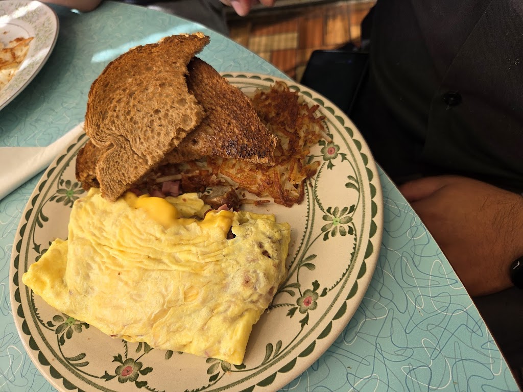 Ham and cheese omelet does not need as much ham, and we don't prefer cubed ham. Hash browns aren't our favorite. When requesting crispy browns, you dont get it. And for the second visit, it was the second time they asked what kind of toast, but we got white each time, not what we request.