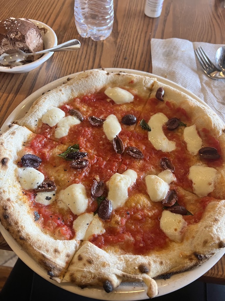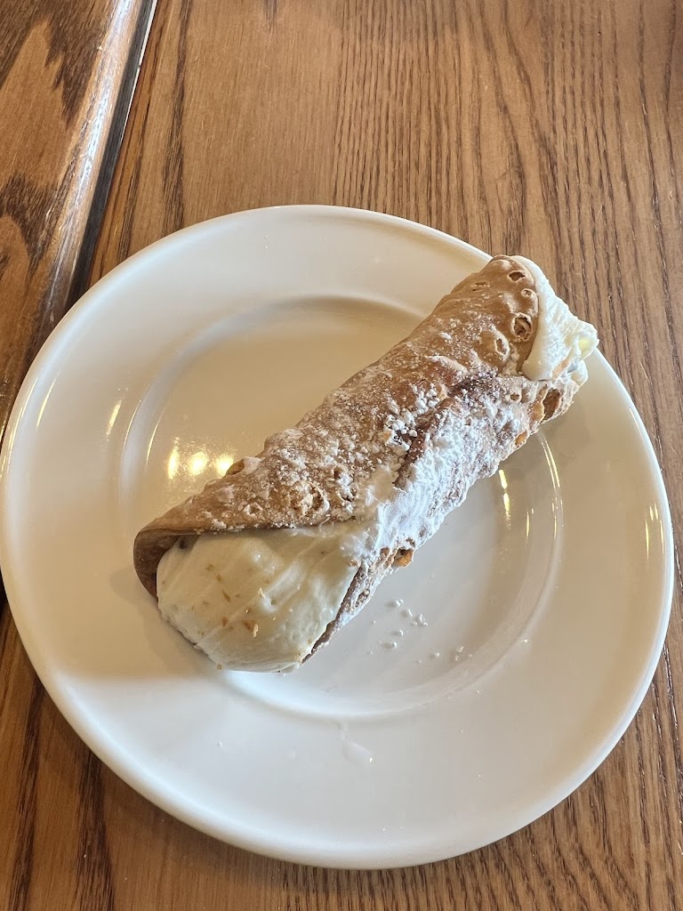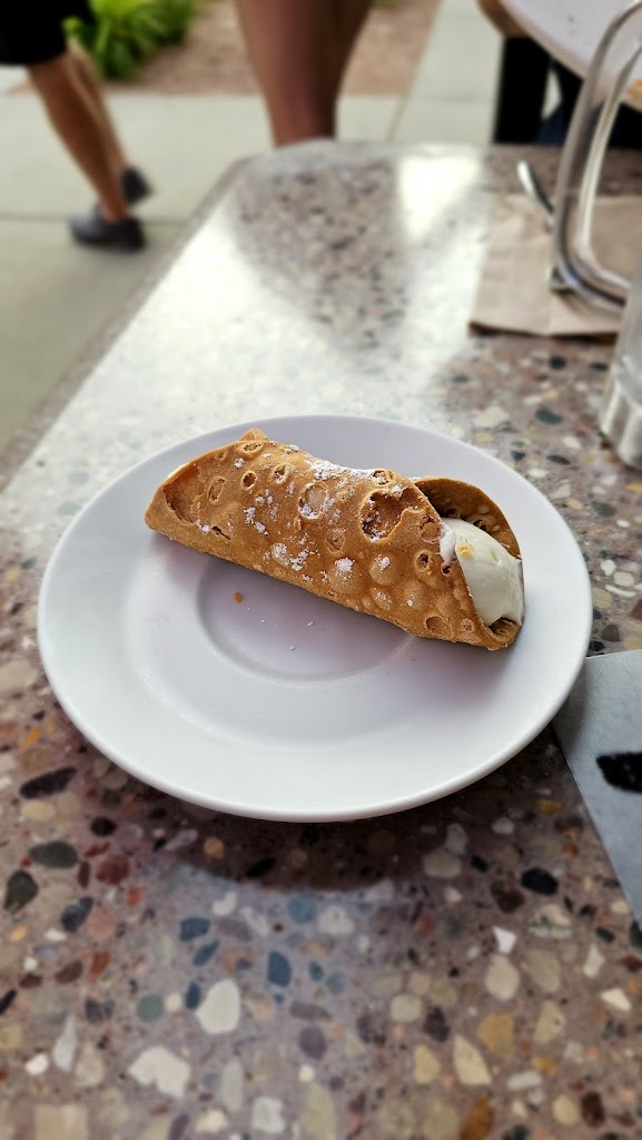 Tasty simple Fired Pizza, clean delicious ingredients was great after a long day outside. Was our first Cannoli.... wasn't what we expected however it was tasty.