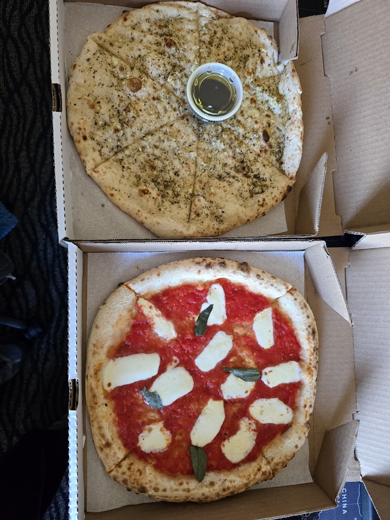 smoked buffalo mozzarella was insane 🤤 our takeout order was ready in minutes and was hot, fresh, and sooo satisfying. i like the personal pizza sizes too—perfect portions!