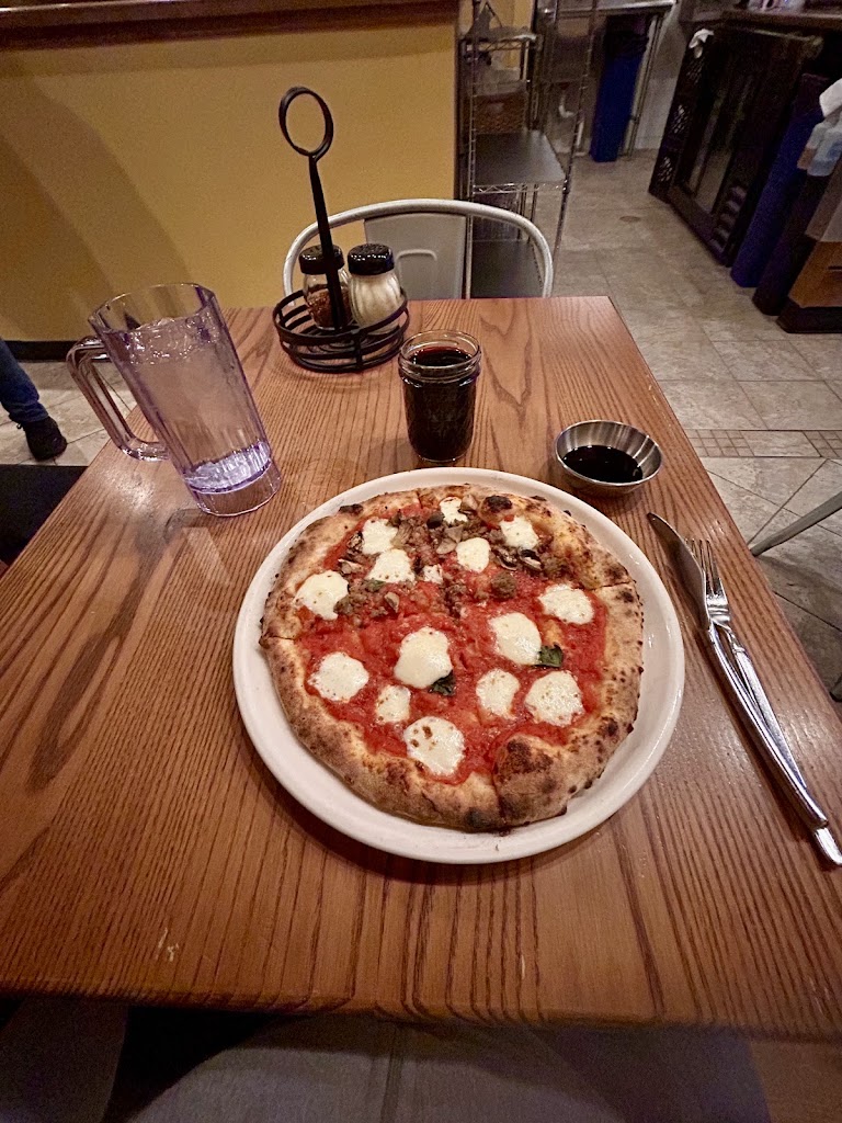 Excellent Neapolitan pizza. Can tell it’s made with fresh ingredients. The cannolis are also great.