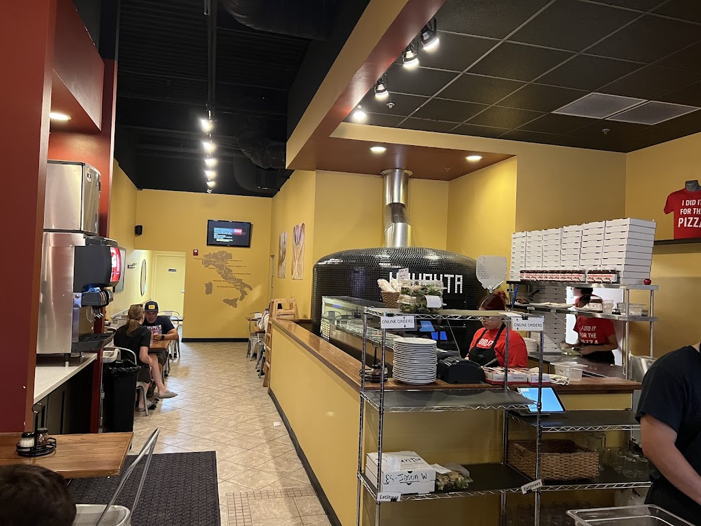 THIS PIZZA!!!....is amazing. Please expand and create a more pleasant seating arrangement, but I won't complain taking your pizza to go as the hotel is always 4 minutes away. So good! Such good ingredients and after eating here twice, I HIGHLY recommend. Like Little Caesars....stay away. Like top of the line ingredients and pizza, this is the place.