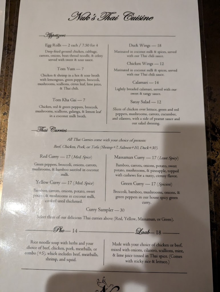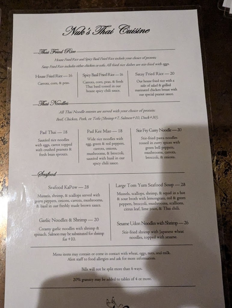 I LOVE Nuks! Iβve been going for years. Its such a wonderful atmosphere with excellent food. I highly recommend their curries and their Tom Kah soup.